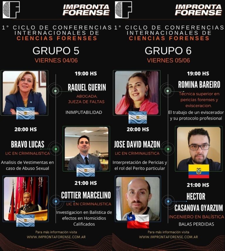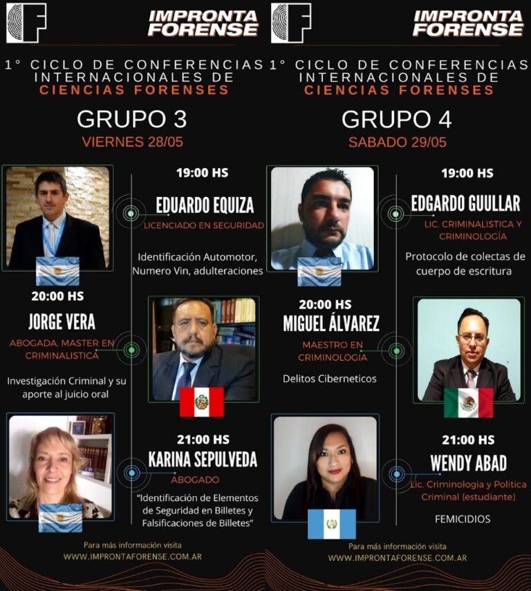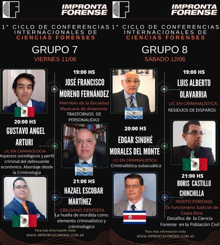 El pasado sábado 5 de junio tuve el honor de participar como expositor en el 1° Ciclo de Conferencias Internacionales de Ciencias Forenses, organizado por Impronta Forense.